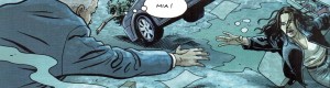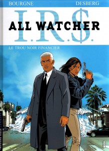- De plus, à la première lecture du scénario, j’avais trouvé que ce tsunami sur L.A., provoqué par un « méchant » qui veut devenir le maître du monde, risquait de paraître un peu « too much » aux lecteurs, car trop éloigné de l’univers plutôt réaliste de la série IR$ et plus proche dans l’esprit de Blake et Mortimer ou de Guy Lefranc (d’où le petit clin d’œil que je me suis permis en donnant à All Watcher – Kazan Zorloff les tempes blanches d’Axel Borg, le méchant de Lefranc). Desberg, informé de mes doutes, a su me convaincre que l’intérêt d’un « spin-off » était justement de s’aventurer sur des territoires inconnus de la série-mère, de se permettre de nouvelles thématiques.