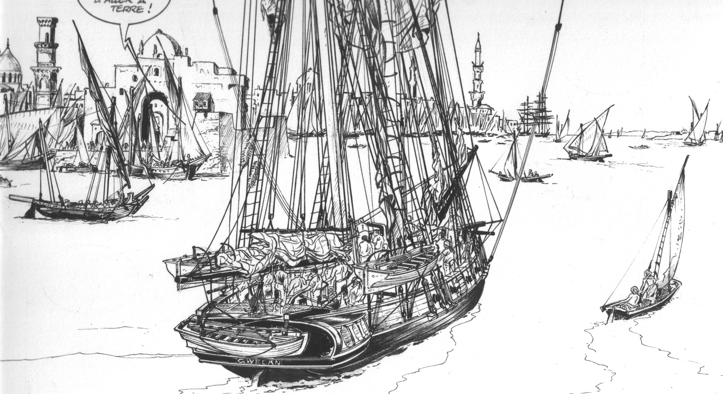 Premier tome du second cycle des Pirates de Barataria, Le Caire envoie Artémis en Egypte. Une destination qui peut paraître curieuse pour une série ancrée, par son titre même, en Louisiane. Mais quelques critiques des tomes 3 et 4, évoquant un début d’essoufflement de la série, m’ont amené à penser qu’il était judicieux de renouveler les décors et les personnages secondaires. L’idée de l’Egypte est venue de Franck, grand amateur des peintres orientalistes. De mon côté, en me documentant sur l’Egypte de l’année 1813, j’ai découvert une somme d’éléments passionnants, et notamment une extraordinaire galerie de personnages.