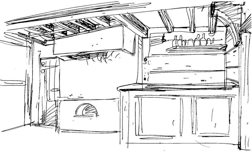 J'ai conçu l'auberge de la Longue-vue, qui est un élément essentiel de l'histoire, à partir de photos et de croquis d'un restaurant du sud de l'Angleterre.