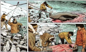 Encore un scénario un peu mal fichu pour le dernier Etre libre. La raison pour laquelle Flo et Andy vont sur Little Diomede est tirée par les cheveux. Et les méchants russes sont pour le moins caricaturaux. En fait, l'intérêt de cet album réside surtout dans son aspect documentaire; je suis plutôt content de la scène très réaliste de la chasse aux morses (pl.16 et 17).