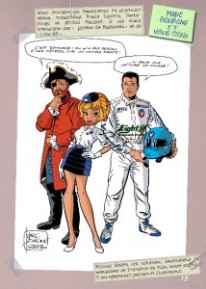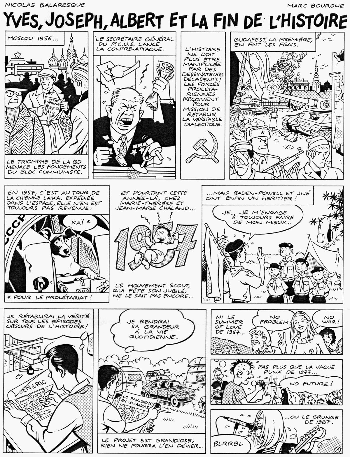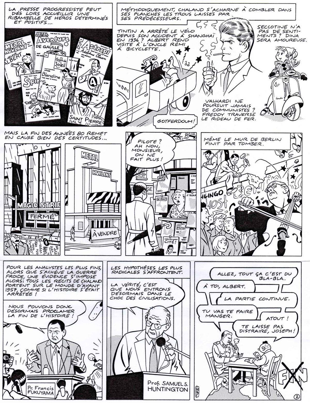 Les deux planches ci-contre, qui rendent hommage au maître français de la ligne claire, Yves Chaland, sont parues dans le livre Yves Chaland, portrait de l'artiste (Champaka 2008). Le scénario, excellent, est signé Nicolas Balaresque.