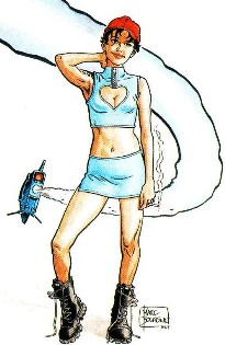 Cette jolie jeune fille est l'héroïne de la série L'Arche de mes copains Jérôme Félix et Vincent Mallié (ce dessin figure dans la galerie qui clôturait le tome 2 de la série paru en 2003 chez Soleil.)
