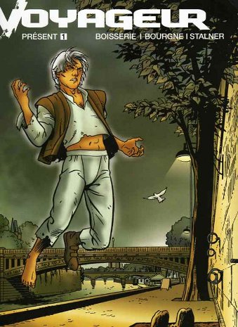 Dessin : Marc Bourgne couleur: Jean-Jacques Chagnaud Couverture : Juanjo Guarnido Glénat (2008)Paris. De nos jours, sur les quais de Seine. Un promeneur. Son chien. Et un homme surgi de nulle part qui s'écrase au sol. Signes particuliers : cheveux blancs, yeux vairons. Et une cicatrice en forme de « V » sur le front... En charge de l'inconnu entre vie et mort alors qu'à la surface de son corps aucune blessure n'est visible, la belle urgentiste Clara Fabiani ignore encore que cette rencontre va changer sa vie. Et qu'elle va vivre un futur déjà rédigé... Ailleurs, dans certains ministères, des cellules de crise discrètes se réunissent. Car la chasse au Voyageur a déjà commencé... Une chasse sur les traces de cet étrange personnage qui apparaît depuis la nuit des temps comme un immortel vivant depuis toujours en marge des hommes...