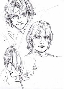 - Ayant commencé Voyageur avant Eric Stalner, pourtant dessinateur du premier cycle, c'est moi qui ai créé les personnages principaux (ci-dessus: des extraits de mes études)