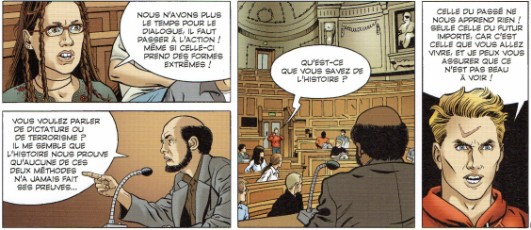 Pour protéger Mark Vedder, Clara et son ami Antoine ont confié tous les éléments du dossier à une journaliste. Celle-ci doit faire éclater l'affaire au grand jour et révéler l'existence du voyageur temporel. Mais cette initiative n'est du goût ni des services secrets, ni du mystérieux groupuscule religieux qui voit en Vedder une menace inacceptable pour le dogme. La poursuite s'engage alors pour empêcher cette publication. De son coté, Fish étend son emprise sur le groupe altermondialiste militant désormais baptisé « groupe V » et mène de nouvelles actions violentes pour forcer les gouvernements et les grandes entreprises à changer radicalement leur politique.